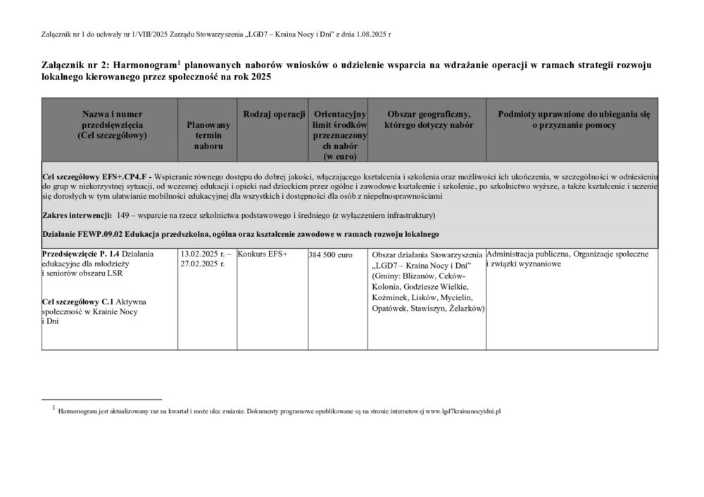 „Europejski Fundusz Rolny na rzecz Rozwoju Obszarów Wiejskich: Europa inwestująca w obszary wiejskie”. Operacja mająca na celu sprawne wdrażanie Strategii rozwoju lokalnego kierowanego przez społeczność (LSR) w tym realizację Planu Komunikacji współfinansowana jest ze środków Unii Europejskiej w ramach poddziałania „Wsparcie na rzecz kosztów bieżących i aktywizacji” Programu Rozwoju Obszarów Wiejskich na lata 2014-2020. Przewidywane wyniki operacji: Wdrożenie Strategii rozwoju lokalnego kierowanego przez społeczność na obszarz e Stowarzyszenia „LGD7 – Kraina Nocy i Dni”,